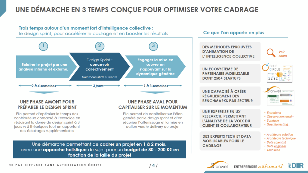 Le Design Sprint nous a permis d’aligner plus de 20 parties prenantes et de lancer le projet sur des bases claires, partagées et activables.